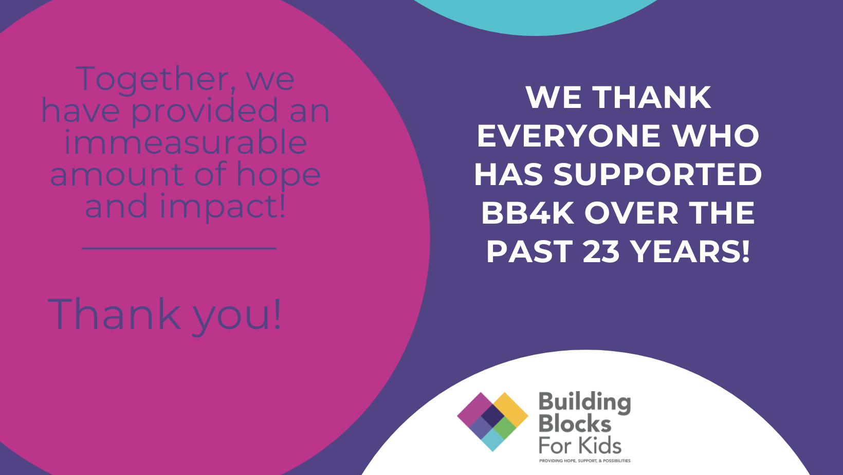 After many years of serving families and children with disabilities, Building Blocks for Kids will be suspending operations at the end of this month as we explire options for the future - including merging with another organization or transitioning some of our programs. For 23 years, we've worked to ensure that no family seeking help is turned away - and that commitment continues. We are dedicated to fulfilling every promise made to children currently in our program and on our waitlist.